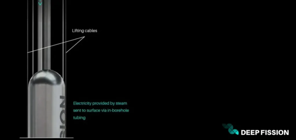 Le modèle Gravity conçu par Deep Fission reprend une technologie de réacteur à eau pressurisée (PWR) classique, combinée à une installation souterraine en forage vertical. Le design utilise de l’uranium faiblement enrichi (LEU), un circuit vapeur non radioactif jusqu’à la surface et des composants standards issus des chaînes pétrolières et géothermiques. La colonne d’eau remplace partiellement l’enceinte de confinement, transférant une partie des fonctions de sûreté à la géologie.