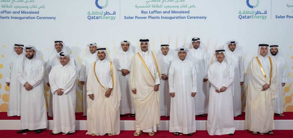 Le Qatar a inauguré le 28 avril deux nouvelles centrales solaires à Ras Laffan et Mesaieed, représentant une capacité combinée de 875 mégawatts (MW). La cérémonie s’est tenue en présence de Son Altesse Sheikh Tamim bin Hamad Al Thani, l’Amir de l’État du Qatar, et de Son Excellence Saad Sherida Al-Kaabi, ministre d’État aux Affaires Énergétiques et président-directeur général de QatarEnergy, accompagnés de hauts responsables du secteur énergétique.